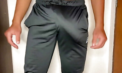 Freeballing walk in nature with a ample sweatpants bulge