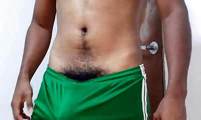 thick taller fellow jerking of in white leggins