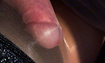 Close up cock in envelope pantyhose .