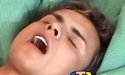 年轻的墨西哥小伙子挤奶他的螺母后barebacking伴侣