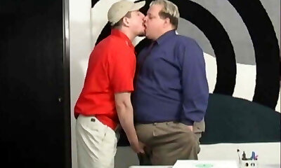 Pizza Guy and Chubby Blond Office Stud